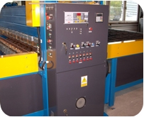 Шаблонні зварювальні машини самохідні і автоматизовані, вироблені нашою фірмою, мають портальну конструкцію з робочою шириною до 3 м. Вони оснащені пневматичними приводами в необхідній кількості, як правило, до двадцяти п'яти, що дозволяє отримати до п'ятдесяти зварних точок. Зміна відстані між електродами і зміна інтервалів затримки візки шаблону дозволяє змінювати розміри осередків зварної сітки в обох напрямках.